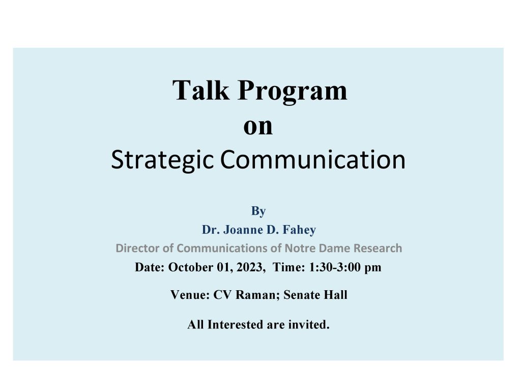 Director of Communications of Notre Dame Research and is an expert on strategic communication. On Sunday, 01 October 2023 in the Senate Hall from 01:30 pm.